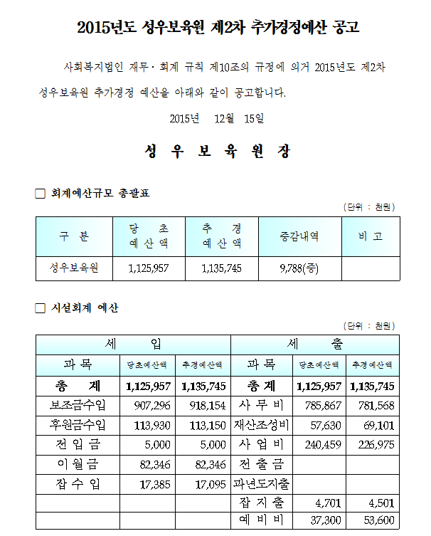 19-03-28 11:24 2015년 성우보육원 제2차 추가경정 예산공고 페이지 정보 작성자 성우보육원 댓글 0건 조회 4,160회 본문 2015년 성우보육원 제2차 추가경정 예산공고 목록 댓글목록 댓글목록 등록된 댓글이 없습니다.