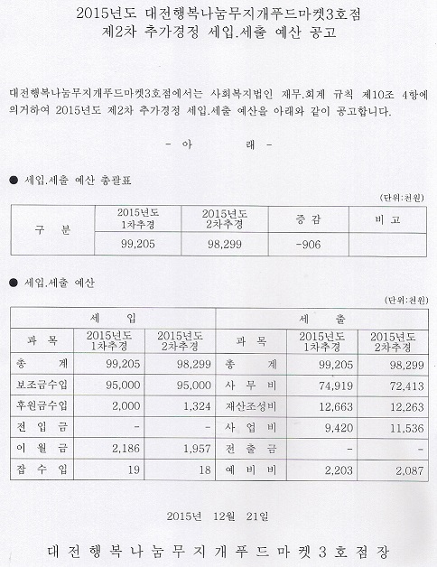 19-03-28 11:24 대전행복나눔무지개푸드마켓3호점 2015년도 제2차 추가경정 세입.세출 예산 공고 페이지 정보 작성자 성우보육원 댓글 0건 조회 4,071회 본문 대전행복나눔무지개푸드마켓3호점 2015년도 제2차 추가경정 세입.세출 예산 공고 목록 댓글목록 댓글목록 등록된 댓글이 없습니다.