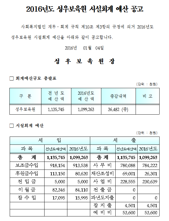 19-03-28 11:26 2016년 시설회계 예산공고(재공고) 페이지 정보 작성자 성우보육원 댓글 0건 조회 4,723회 본문 2016년 시설회계 예산공고(재공고) 목록 댓글목록 댓글목록 등록된 댓글이 없습니다.