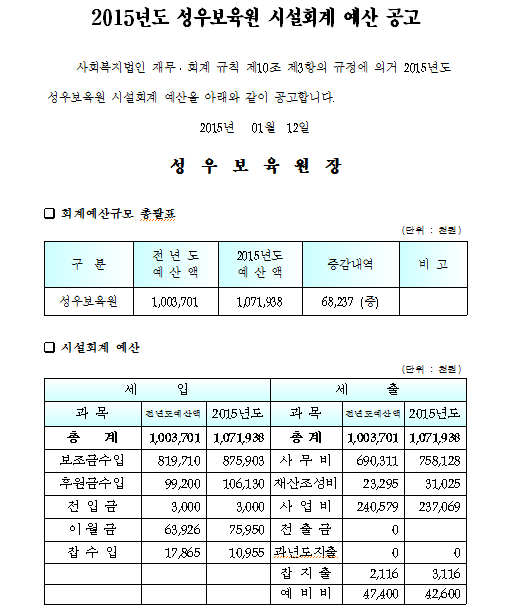 19-03-28 11:04 2015년 시설회계 예산 공고 페이지 정보 작성자 성우보육원 댓글 0건 조회 4,427회 본문 2015년 시설회계 예산 공고 목록 댓글목록 댓글목록 등록된 댓글이 없습니다.