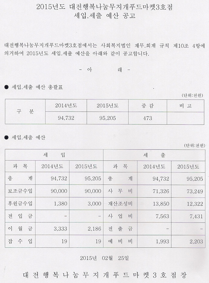 19-03-28 11:04 대전행복나눔무지개푸드마켓3호점 2015년도 세입.세출 예산 공고 페이지 정보 작성자 성우보육원 댓글 0건 조회 4,053회 본문 대전행복나눔무지개푸드마켓3호점 2015년도 세입.세출 에산 공고 목록 댓글목록 댓글목록 등록된 댓글이 없습니다.