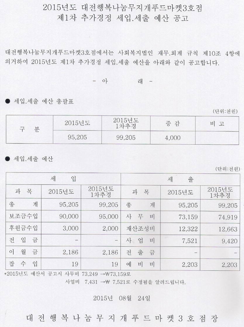 19-03-28 11:22 대전행복나눔무지개푸드마켓 2015년 제1차 추가경정 세입.세출 예산서 페이지 정보 작성자 성우보육원 댓글 0건 조회 4,594회 본문 대전행복나눔무지개푸드마켓 2015년 제1차 추가경정 세입.세출 예산서 목록 댓글목록 댓글목록 등록된 댓글이 없습니다.