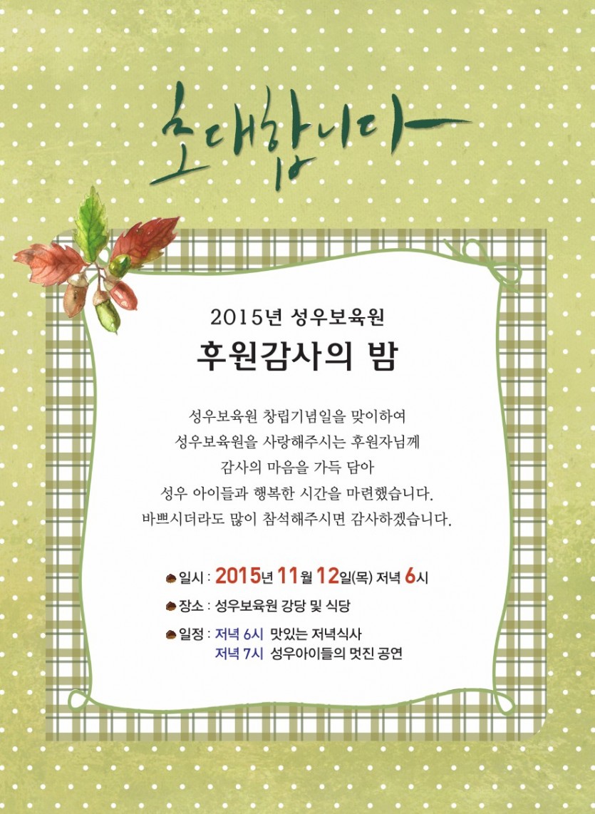2015년 성우보육원 후원감사의 밤에 여러분을 초대합니다.