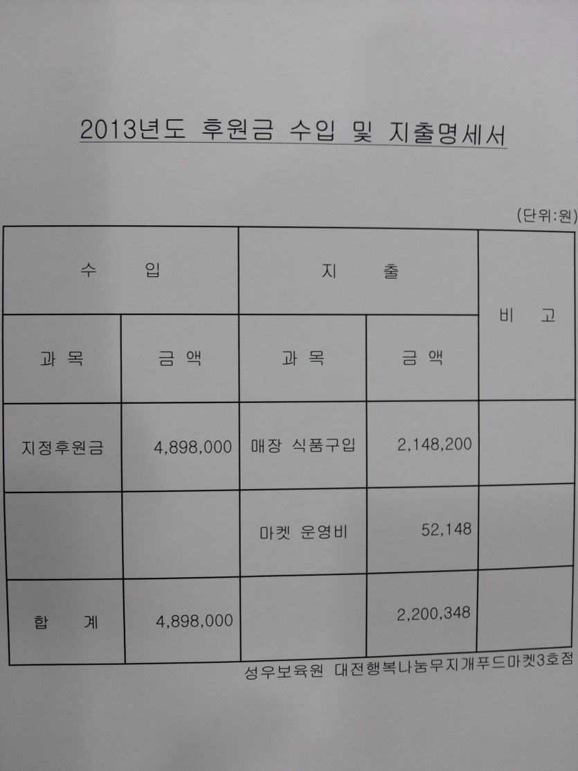 성우보육원 행복나눔무지개푸드마켓3호점 2013년도 후원금 수입 및 지출명세서 작성일 19-03-28 10:58 페이지 정보 작성자성우보육원 조회 4,998회 댓글 0건 본문 성우보육원 행복나눔무지개푸드마켓3호점 2013년도 후원금 수입 및 지출명세서 댓글목록 댓글목록 등록된 댓글이 없습니다.