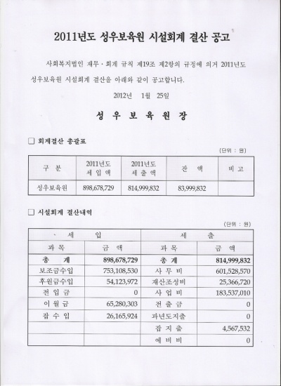 19-03-28 10:51 2011년도 성우보육원 시설회계 결산 공고 페이지 정보 작성자 성우보육원 댓글 0건 조회 4,996회 본문 2011년도 성우보육원 시설회계 결산 공고 목록 댓글목록 댓글목록 등록된 댓글이 없습니다.
