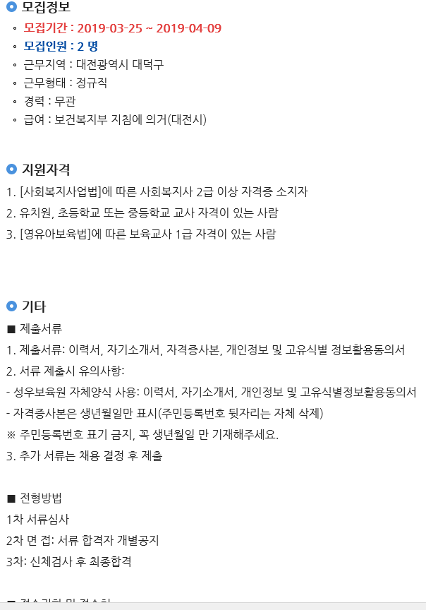 19-03-25 11:50 (공고) 생활지도원 모집 페이지 정보 작성자 성우보육원 댓글 0건 조회 5,275회 본문 생활지도원 모집 ※ 정확한 정보는 복지넷 공고 참고해주세요. 목록 댓글목록 댓글목록 등록된 댓글이 없습니다.