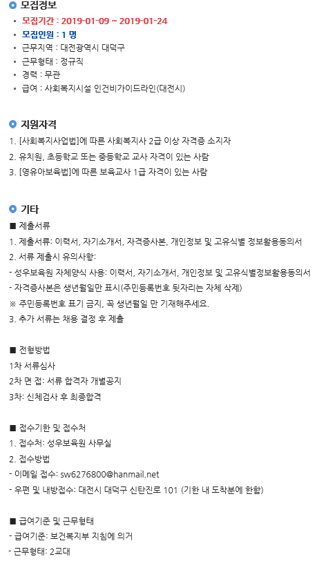 19-03-28 11:48 (공고) 생활지도원 모집 페이지 정보 작성자 성우보육원 댓글 0건 조회 5,012회 본문 생활지도원 모집 ※ 접수된 서류는 일체 반환치 않음 복지넷(https://www.bokji.net/job/off/01_01.bokji)의 첨부문서 활용 목록 댓글목록 댓글목록 등록된 댓글이 없습니다.