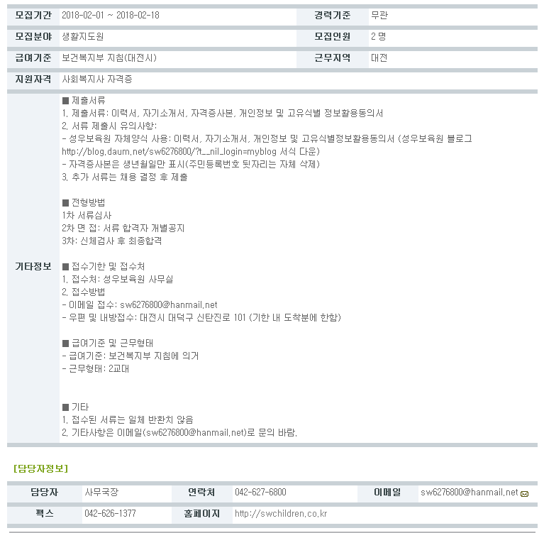 19-03-28 11:43 (공고)생활지도원 모집 페이지 정보 작성자 성우보육원 댓글 0건 조회 4,625회 본문 (공고)생활지도원 모집 목록 댓글목록 댓글목록 등록된 댓글이 없습니다.