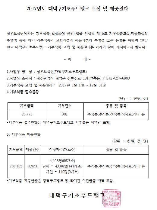 19-03-28 11:43 2017년도 대덕구기초푸드뱅크 모집 및 제공결과 페이지 정보 작성자 성우보육원 댓글 0건 조회 4,520회 본문 2017년도 대덕구기초푸드뱅크 모집 및 제공결과 목록 댓글목록 댓글목록 등록된 댓글이 없습니다.