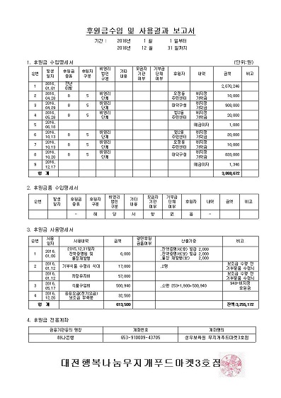 19-03-28 11:36 대전행복나눔무지개푸드마켓3호점 2016년 후원금 수입 및 사용결과 공고 페이지 정보 작성자 성우보육원 댓글 0건 조회 4,911회 본문 대전행복나눔무지개푸드마켓3호점 2016년 후원금 수입 및 사용결과 공고 목록 댓글목록 댓글목록 등록된 댓글이 없습니다.