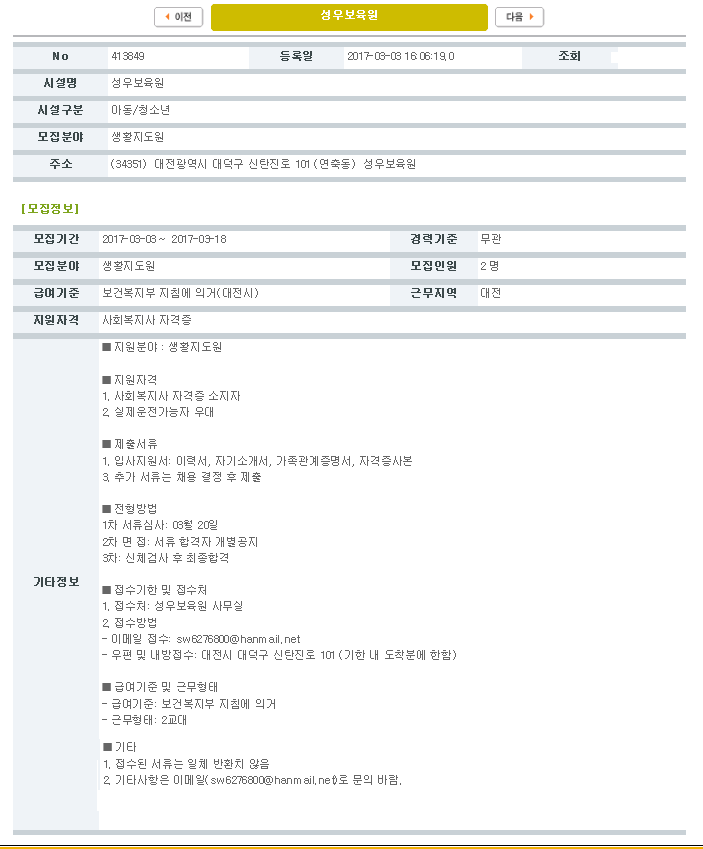 19-03-28 11:37 (채용공고)생활지도원 모집 페이지 정보 작성자 성우보육원 댓글 0건 조회 4,987회 본문 생활지도원 모집 목록 댓글목록 댓글목록 등록된 댓글이 없습니다.