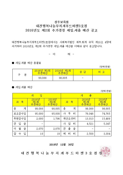 19-03-28 11:34 대전행복나눔무지개푸드마켓3호점 2016년 제2차 추가경정 세입.세출 예산 페이지 정보 작성자 성우보육원 댓글 0건 조회 5,123회 본문 대전행복나눔무지개푸드마켓3호점 2016년 제2차 추가경정 세입.세출 예산 목록 댓글목록 댓글목록 등록된 댓글이 없습니다.