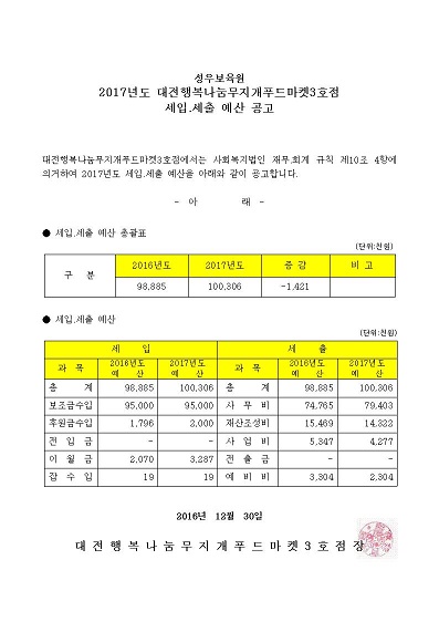 19-03-28 11:34 대전행복나눔무지개푸드마켓3호점 2017년 세입.세출 예산 페이지 정보 작성자 성우보육원 댓글 0건 조회 4,910회 본문 대전행복나눔무지개푸드마켓3호점 2017년 세입.세출 예산 목록 댓글목록 댓글목록 등록된 댓글이 없습니다.