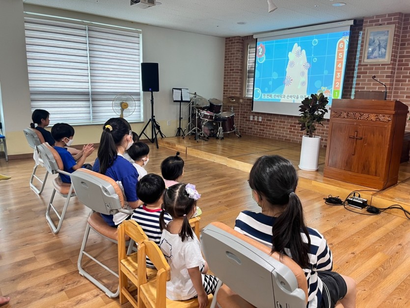 미취학 아동들도 똘망한 눈빛으로 교육에 열중하는 모습이