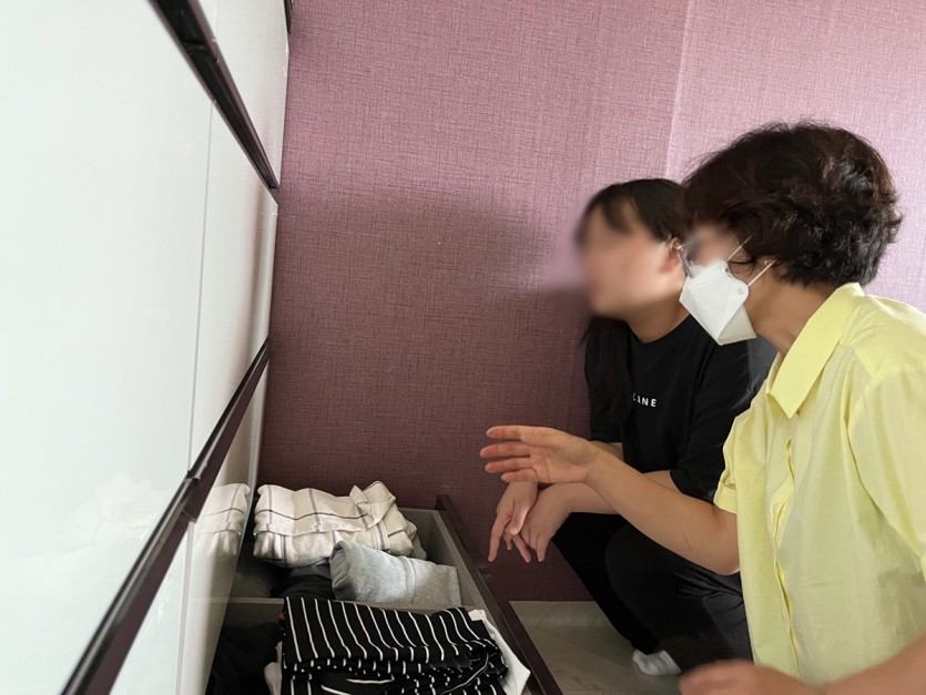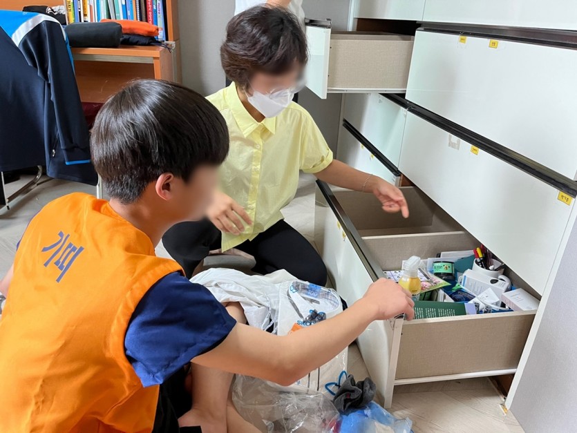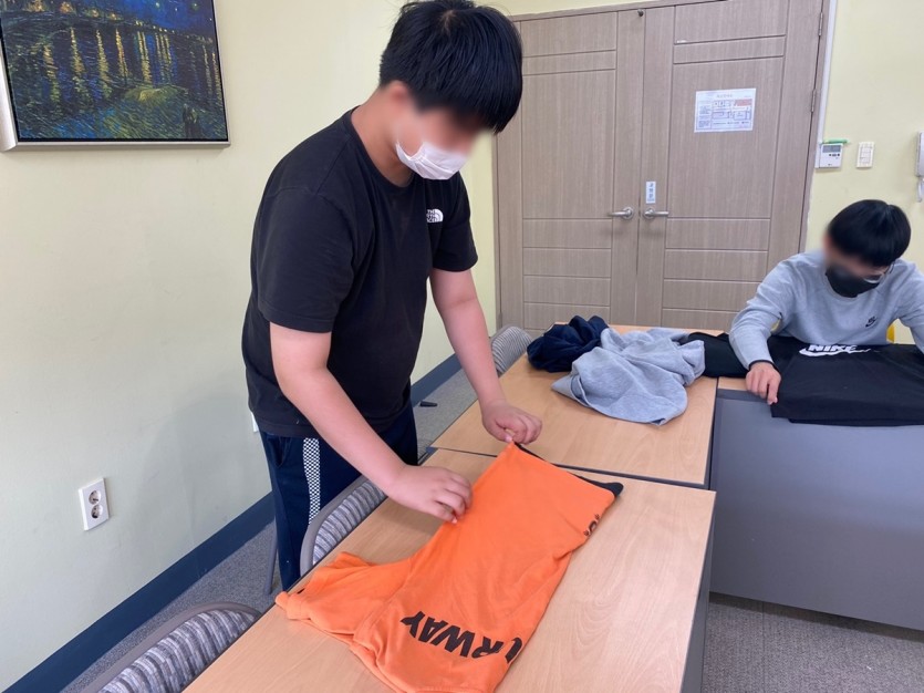 선생님과 함께 아동들의 방에 가서 직접 옷장 정리하는 법을 배우고 불필요한 것들을 정리하는 시간 가졌습니다.