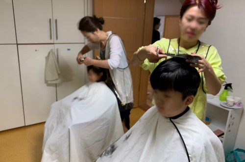 트윈스 미용실 봉사자분들 오셔서 아이들 미용 진행해 주…