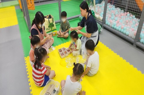 좋은 생각어린이집 원장님 외 2분 오셔서미취학 아동 대상으로 원내 실내놀이터에서 미술 및 체육 활동…