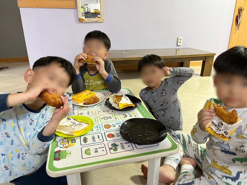 우리 아이들이 출출한 저녁에 모두 모여 감사한 마음을 가지고