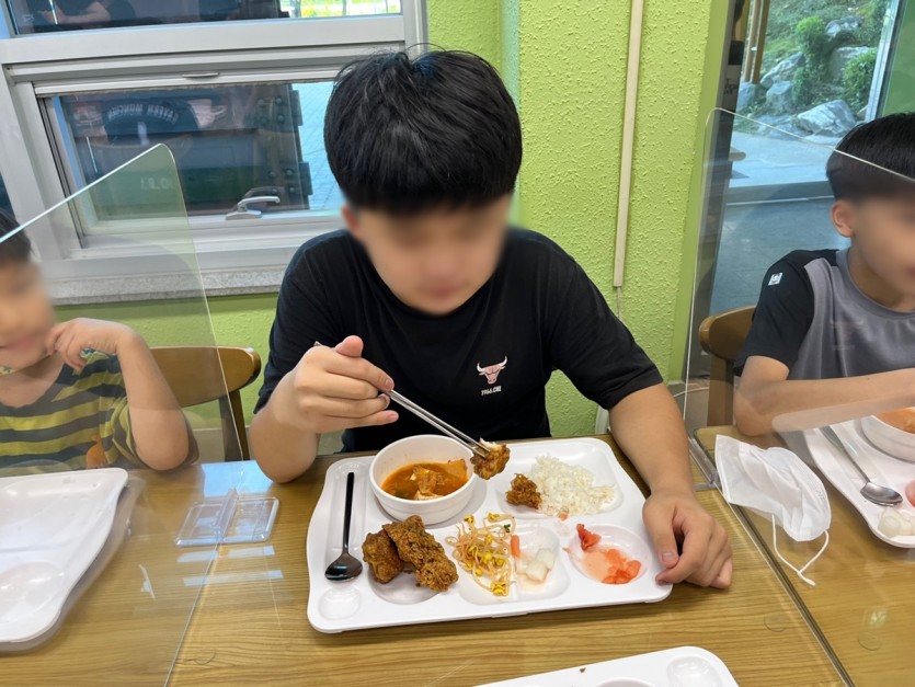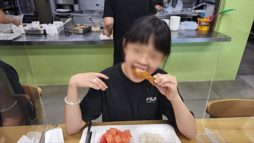 저녁 시간에 아이들 모두가 후원해주신 분들께 감사한 마음으로 치킨을 맛있게 먹으며