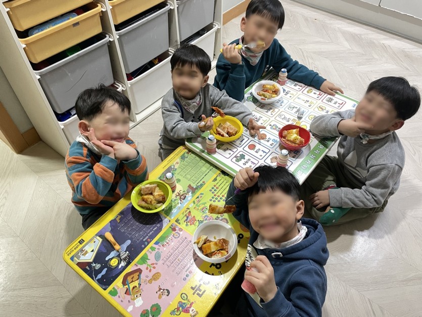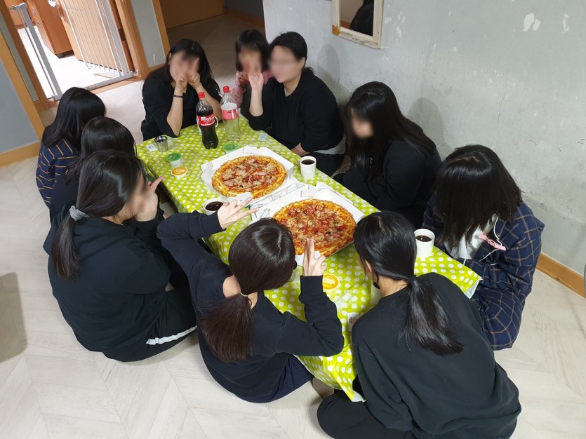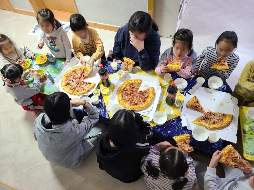 아동들 맛있게 피자를 먹으며 즐거운 시간을 보냈으며, 감사한 마음을 가지고 남김없이 맛있게 먹었습니다.