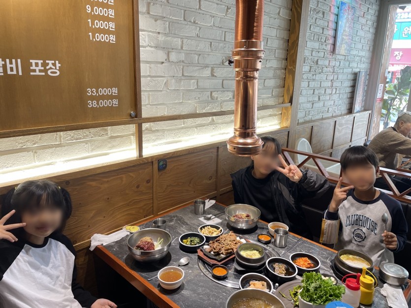 아이들이 좋아하는 달콤하고 고소한 숯불갈비와 시원한 냉면, 맛있는 된장찌개까지