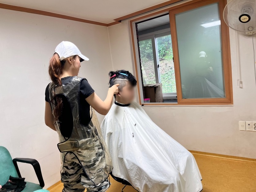 마인자 원장님께서 방문하셔서 미용봉사 진행해 주셨습니다.