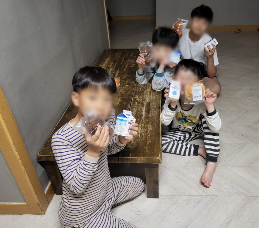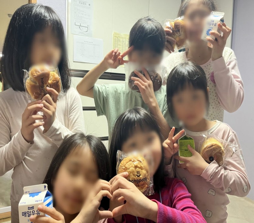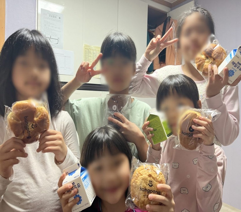 아동들은 후원해주신 빵과 우유를 먹으며 즐거웠던 하루에 대해 이야기 하거나