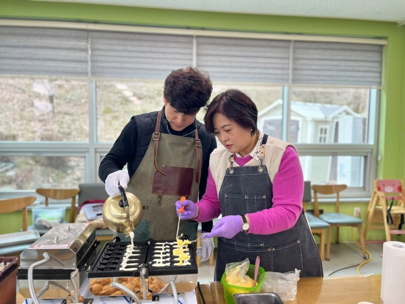 너무도 귀여운 붕어빵틀과 따뜻한 가래떡과 어묵꼬치를 준비해오셔서