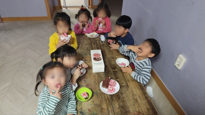 아이들이 크게 한입 베어먹는 모습이 너무 행복해 보이네요^^